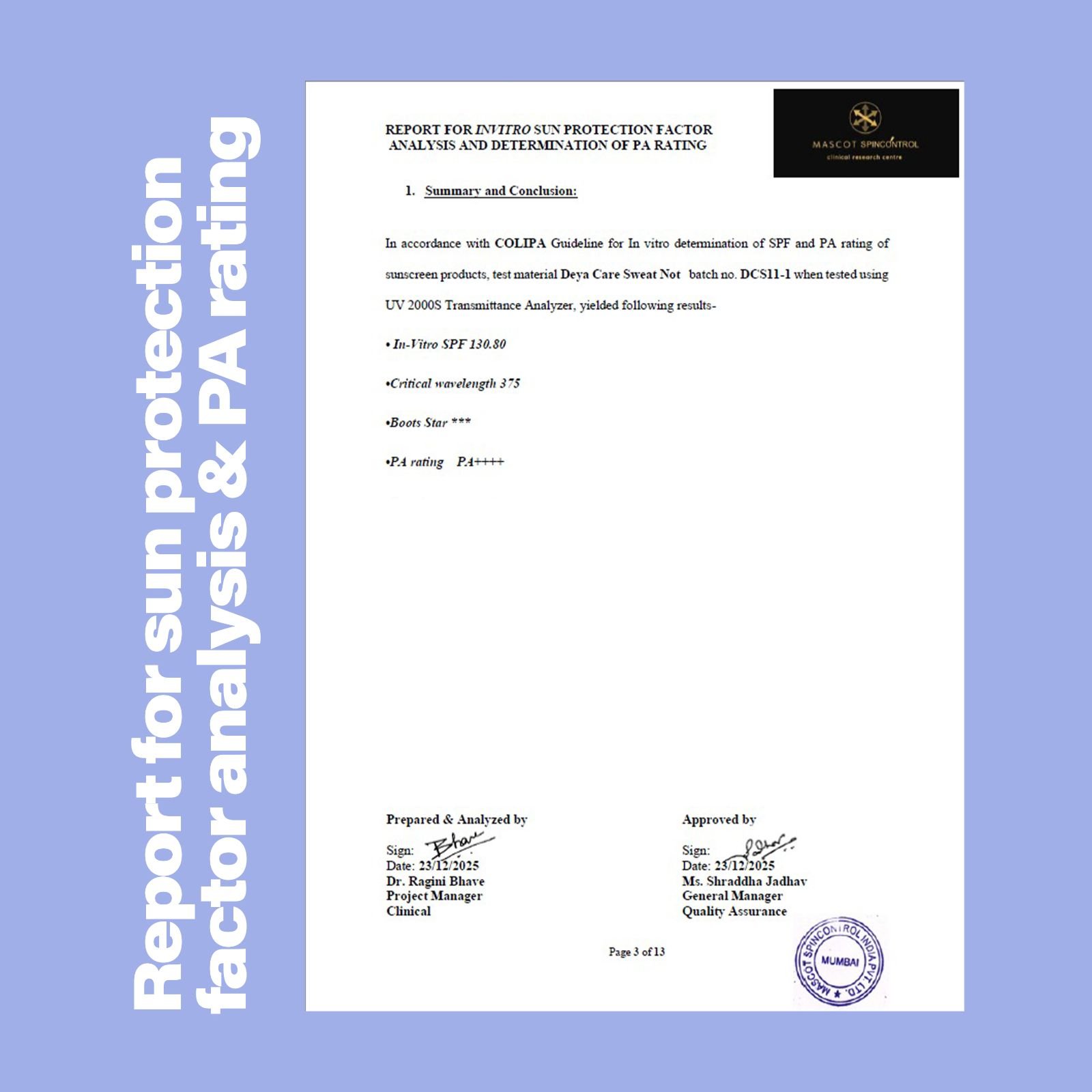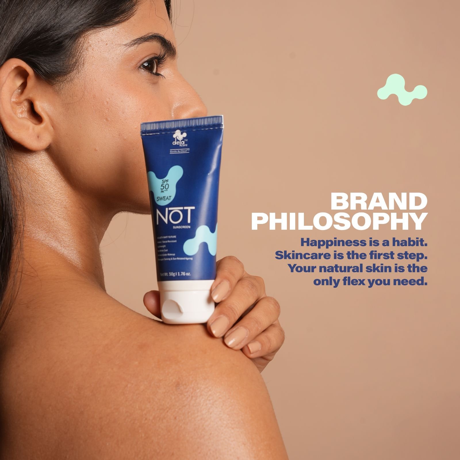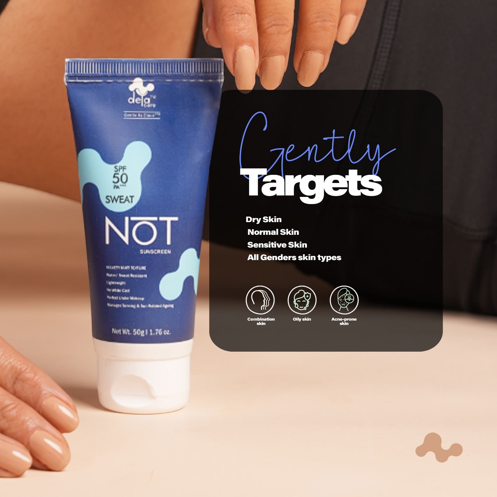 Sweat NOT SPF 50 PA+++ Mineral Sunscreen Gel is a lightweight, sweat-resistant sun protection formula designed for everyday Indian weather. Powered by Zinc Oxide and Titanium Dioxide along with advanced UV filters, it provides broad spectrum UVA & UVB protection to help defend against sunburn, tanning and premature signs of ageing. The gel-based texture absorbs quickly, delivers a smooth matte finish and leaves no heavy or greasy feel, making it ideal for daily wear, outdoor activities, sports and beach use. Enriched with skin-conditioning ingredients like Caprylic/Capric Triglyceride and Silica, it helps maintain hydration while controlling excess oil for a clean, non-sticky look. Dermatologically tested and suitable for all skin types including sensitive skin, this face and body sunscreen blends easily without a white cast and works comfortably under makeup, keeping your skin protected, fresh and shine-free throughout the day